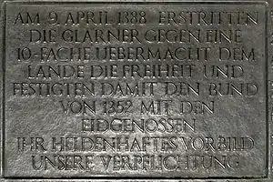 - День пам’яті битви під Нефельсом, кантон Гларус. Традиції (російською). swissworld.org. Архів оригіналу за 16 липня 2013. Процитовано 18 лютого 2011.