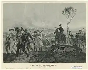 Битва під Саратогою (англ. Battles of Saratoga) — епізод Американської революції, в ході якого північноамериканським патріотам вперше вдалося здобути значну перемогу над королівською армією 7 жовтня 1777 року . Бій вважається у американській історіографії переломним моментом всієї війни[7]. Фактично ця битва складалася з двох боїв на одній і тій ж місцевості: 19 вересня генерал Бургойн здобув незначну перемогу у битві при Фріменс-Фарм, проте наступна атака, відома як битва під Беміс-Гайтсом 7 жовтня 1777 року, виявилася невдалою і американці захопили частину британських укріплень. Бургойн почав відступати, що призвело до оточення під Саратогою та капітуляції британської армії 17 жовтня. Ця перемога дала привід Франції вступити у війну на боці Штатів[8].