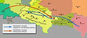 Довідавшись про наступ поляків і литовців турки і татари почали відхід з ясиром[5][9]. Польсько-литовські війська переслідували противника, однак, у генеральну битву вступити з ними не наважувались[5][7][8][9]. У ряді локальних сутичок полякам вдалося розбити кілька загонів турків і татар, що однак, не вплинуло на загальний наслідок вторгнення — спустошення Подільського, Руського (Львівської, Галицької, частково — Перемишльської земель) та півдня Волинського воєводства.