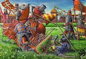 ![]() Турнір між воєводою Воршем та князем Ростиславом під обложеним містом Ярославом Турнір між воєводою Воршем та князем Ростиславом під обложеним містом Ярославом | |||||||