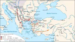 - Марк Юніан Юстін. Эпітома твору Помпея Трога «Історія Філіппа», XXIV, 6—8. Публікація на сайті «Симпосий»