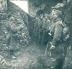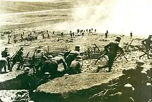 ![]() Австро-угорська піхота атакує італійські позиції. Італійський фронт Австро-угорська піхота атакує італійські позиції. Італійський фронт | |||||||