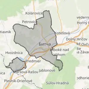 Громада Битча розташована в Битчанській котловині — орієнтовне розташування — супутникові знимки. Битча затиснута між Гріцовським каналом та Вагом. Через нього пролягає автомагістраль Е50 та Е75 загальноєвропейського значення, загалом вона є центром суспільного та економічного життя Битчанської округи.