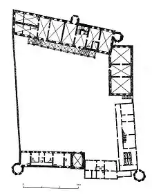 Замковий комплекс складався з кількох цегляних будівель, які утворювали неправильний чотирикутник розмірами 75×70 м.