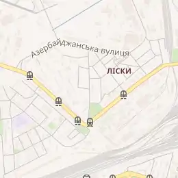 | Трамваї | Т 23, 33 (по Алматинській вулиці) |