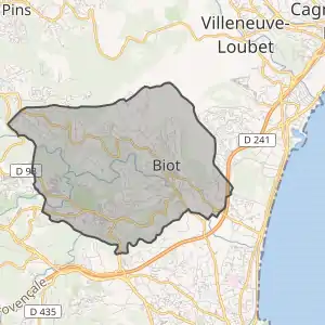 - Розташування муніципалітету Бйот на мапі Франції та сусідні муніципалітети