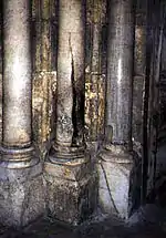 Існують перекази, за якими тріщина на одній з колон Храму Господнього пояснюється тим, що на неї зійшов Благодатний вогонь. Існують щонайменше дві версії сходження.