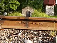 Рейка, зроблена на металургійному заводі міста Блайневона і побачена, як стверджує автор фото, у Швеції .
