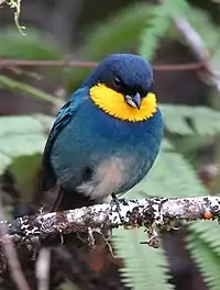 Блакитна́р золотогорлий[2] (Iridosornis porphyrocephalus) — вид горобцеподібних птахів родини саякових (Thraupidae)[3]. Мешкає в Колумбії і Еквадорі.