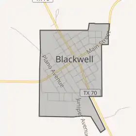 Блеквелл (англ. Blackwell) — місто (англ. city) в США, в округах Нолан і Коук штату Техас. Населення — 311 осіб (2010[1]).
