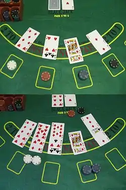 За ігровим столом, як правило, знаходяться декілька гравців, які перед початком гри роблять ставки. Після цього ділер роздає кожному гравцеві по одній карті, кладе карту собі і знову дає гравцям по одній карті. Дві карти гравця — початкова комбінація, яку можна намагатися поліпшити, набираючи додаткові карти. Потім те ж саме робитиме ділер. Виграє той, чия комбінація опиниться ціннішою.