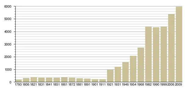 Динаміка населення (base Cassini de l'EHESS pour les nombres retenus jusqu'en 1962[4], base Insee à partir de 1968 (population sans doubles comptes puis population municipale à partir de 2006)[5] · [6] ):