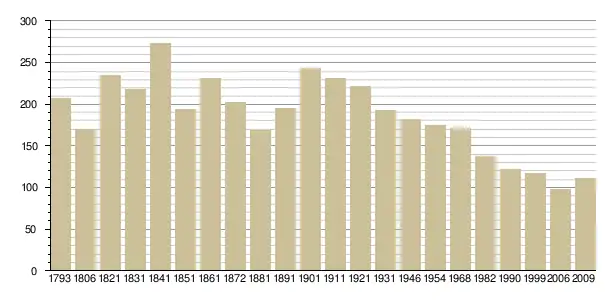 Динаміка населення (base Cassini de l'EHESS pour les nombres retenus jusque 1962[3], base Insee à partir de 1968 (population sans doubles comptes puis population municipale à partir de 2006)[4] · [5] ):