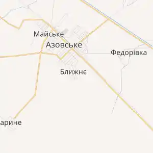 Ближнє - село на південному сході району, у степовому Криму, висота над рівнем моря - 27 м. Фактично - південно-східна околиця смт Азовське, там же найближча залізнична станція - Азовська.
