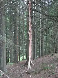 Високі дерева — часта мішень для блискавок. На реліктових деревах-довгожителях легко можна знайти численні шрами від блискавок. Вважається, що поодиноке дерево, частіше вражається блискавкою, хоча в деяких лісових районах шрами від блискавок можна побачити майже на кожному дереві. Сухі дерева від удару блискавки спалахують, а живі вибухають або репаються через миттєве закипання соку[2]. Найчастіше притягає електричні розряди дуб звичайний із глибокою стрижневою кореневою системою. Спостереження вчених у змішаному лісі дали змогу з'ясувати, що зі ста ударів блискавки на дуб припадає 54, на тополю — 24, смереку — 10, сосну — 6, бук — 3, а на робінію — 1 удар. Тоді як береза, клен та горіх не зазнали жодного удару, хоча у них потрапляють грозові розряди, якщо стоять поодинці[10].