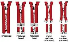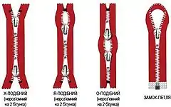 За видами зубів виділяють три конструкції блискавок: