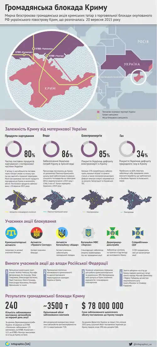 ![]() Економічна блокада окупованого Росією Криму, вересень 2015 | |||||||||||||||