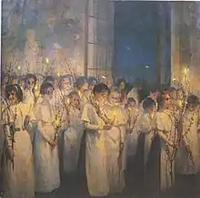 В Таганрозькому художньому музеї зберігаються полотна і Олександра Леонтовського, і Серафими Блонської. Найбільш сильною за враженням є картина Блонської «Дівчата. Вербна неділя», її дипломна праця 1900-го року, яку вона подарувала місту Таганрогу в 1942-му році. На картині змальовані юні дівчата у церкві під час святкової служби. У дівчат в руках гілочки верби, палають свічки, у відчинені двері храму заглядає синє нічне небо. Обличчя дівчат на полотні відповідають обличчям святих на стінних розписах церкви. Світлі чисті відтінки цієї картини створюють у глядачів урочистий святковий настрій.