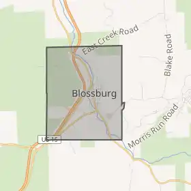 Блоссбург розташований за координатами 41°40′46″ пн. ш. 77°04′08″ зх. д. (41.679525, -77.068951)[2]. За даними Бюро перепису населення США в 2010 році місто мало площу 12,03 км², уся площа — суходіл.