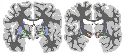 РОСТРАЛЬНІ: стріатум, бліда куля (GPe і GPi)