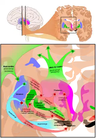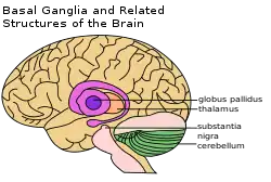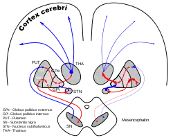 ![]() Бліда куля (лат. Globus pallidus) знизу праворуч. | |