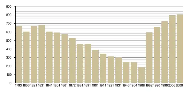 Динаміка населення (INSEE[4] і Cassini[5] ):