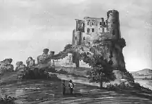 Під час шведського потопу, в 1657 році, шведи під командуванням генерала Мюллера сильно зруйнували замок. Наступним власником замку стала родина Менцінських із Жарек, але у 1661 році замок було покинуто і він почав занепадати. Коли у 1683 році король Ян ІІІ Собеський по дорозі до Кракова — місця зосередження польських військ перед віденською битвою — він розбивав табір поруч із замком[1].