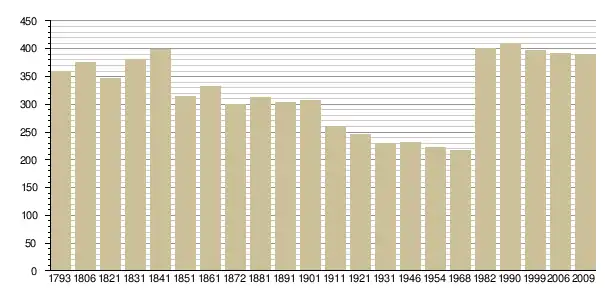 Динаміка населення (base Cassini de l'EHESS pour les nombres retenus jusque 1962[3], base Insee à partir de 1968 (population sans doubles comptes puis population municipale à partir de 2006)[4] · [5] ):