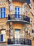 Наріжна частина пластично насичена й оздоблена скульптурними атлантами та каріатидами. Увінчана фігурною вежкою.