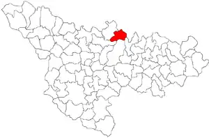 Комуна розташована на відстані[3] 393 км на північний захід від Бухареста, 35 км на північний схід від Тімішоари.