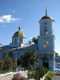 18 червня 1799 архієпископом Новоросійським і Дніпровським Гавриїлом, за клопотанням ігумена Корсунського монастиря Іоасафа, було дано дозвіл на прибудову церкви в цій будівлі та зарахування її до монастиря. Церква була відкрита на другому поверсі та освячена в ім'я Пресвятої Богородиці, а у великих підвалах влаштовані келії. Крім цього двоповерхового будинку в подвір'ї входили флігель і сараї. Вся ділянка займав чверть кварталу, витягнувшись уздовж Торгового провулку від Богородицької до Михайлівської вулиці. У 1818 році церква була розширена, прибудована триярусна дзвіниця (дерев'яна, на кам'яному першому ярусі) і дерев'яний барабан з куполом. У 1834 році Богородицька старообрядницька церква була звернена у єдиновір'я. У 1885 році дзвіниця перебудована в кам'яну.