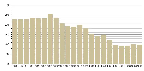 Динаміка населення (base Cassini de l'EHESS pour les nombres retenus jusque 1962[3], base Insee à partir de 1968 (population sans doubles comptes puis population municipale à partir de 2006)[4] · [5] ):