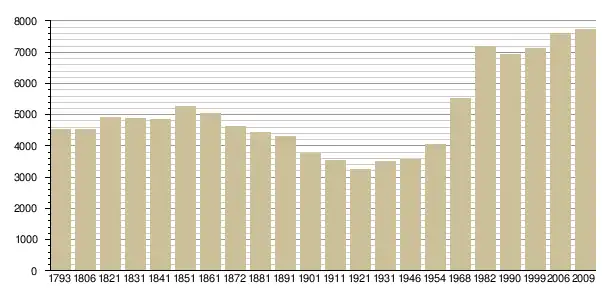 - Avant 1968 : Cassini ; depuis 1968 : recensements INSEE ; recensement INSEE 2006, наведено за французькою вікіпедією