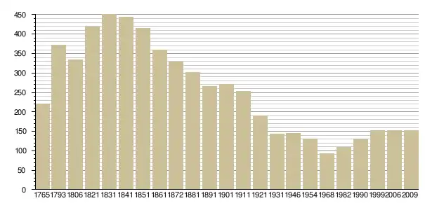 Динаміка населення (Baratier, Duby & Hildesheimer pour l’Ancien Régime ; Insee[3], EHESS[4] pour les chiffres issus des recensements légaux ):