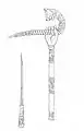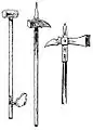 Бойовий молоти XIV ст. Ліворуч — найпростіший свинцевий, праворуч — Люцернський молот (верхня частина)