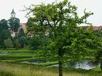 Церква Святої Марії на горі, рибні ставки на передньому плані