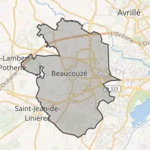 Муніципалітет розташований на відстані[2] близько 270 км на південний захід від Парижа, 75 км на схід від Нанта, 6 км на захід від Анже.