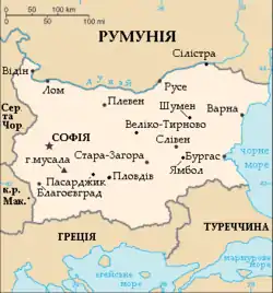 Болга́рія (заст. укр. Болгарщина[6], болг. България), офіційна назва: Респу́бліка Болга́рія (болг. Република България) — держава у Південно-Східній Європі, розташована в східній частині Балканського півострова, займаючи 22 % його території. Межує на півночі з Румунією — вздовж Дунаю, на півдні — з Грецією і Туреччиною, на заході — з Сербією і Північною Македонією. На сході її омиває Чорне море. Столиця і найбільше місто — Софія. Інші великі міста: Пловдив (382 тис.), Варна (365 тис.), Бургас (226 тис.) Русе (167 тис.). Площа — 110,9 тис. км², що робить її 16-ю за розміром країною Європи, і найбільшою країною Балканського півострова. Загальна довжина державного кордону — 2245 км, з них 1181 км — наземний, 686 км — річковий, і 378 км — морський. Офіційна мова — болгарська, грошова одиниця — лев.