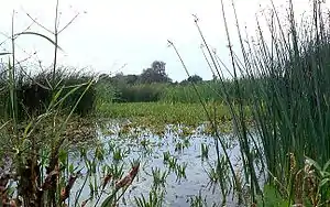 - Низинні болота утворюються в низинах, де збираються ґрунтові води. Завдяки багатому мінеральному складу ґрунтових вод низинні болота мають рясну рослинність і, зазвичай, вкриті зеленими мохами, хвощем, високою густою осокою, очеретом, заростями верби, вільхи та берези.