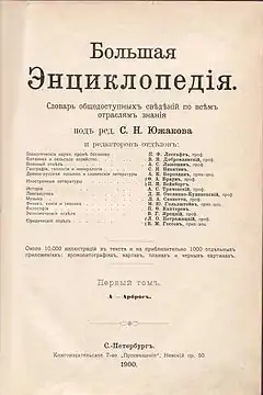«Большая энциклопедия» (укр. Велика енциклопедія; повна назва — «Большая Энциклопедія. Словарь общедоступныхъ свѣдѣній по всѣмъ отраслямъ знанія подъ ред. С. Н. Южакова») — словник загальнодоступних відомостей з усіх галузей знань. Друкувався в 1900—1909 роках відомим дореволюційним видавництвом «Просвещение». Опубліковано 22 томи, які вийшли окремими випусками (кожен том складався з 20 випусків).