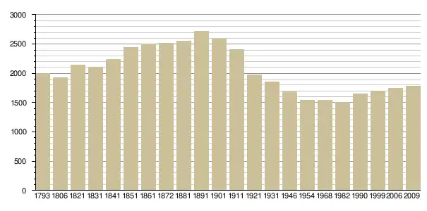 - Recensements de 1793 à 1999 : Cassini ; recensement 2006 : INSEE, наведено за французькою вікіпедією