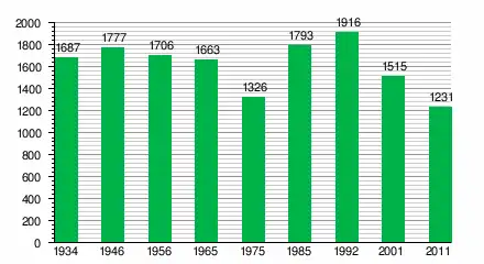 За даними перепису населення 2011 року у місті проживала 1231 особа.
