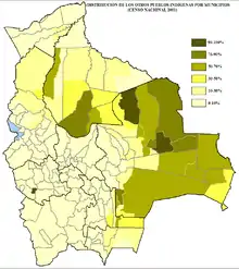 Населення Болівії складається з 4 національних груп: іспаномовних болівійців (39,5 % від загальної кількості жителів), кечуа (32,9 %), аймара (23,8 %) й так званих «лісових індіанців»(2,5 %).