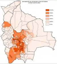 Кечуа населяють центральну та південну частини плоскогір'я Альтіплано, департаменти Оруро, Потосі, Кочабамба й північну частину Чукісака. Проживають вони тільки на високогір'ї та у низовини не переселяються. Значною також є їхня доля серед міського населення. Разом же у Болівії проживає 16 % від загальної чисельності кечуа.