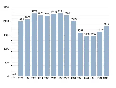 Станом на 31 грудня 2014 року в муніципалітеті офіційно проживало 169 іноземців з 34 країн, серед них 88 громадян країн Євросоюзу та 7 громадян України.[4]