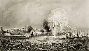 8 (20) квітня союзний флот у складі 19 кораблів, 10 парових фрегатів і 3 канонерок (за іншою версією — у складі 28 вимпелів) під командуванням адмірала Гамелена підійшов до міста і став на якір. Через два дні, в Страсну суботу, союзники висунули для обстрілу 9 кораблів[8]: