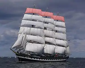 Вище бом-брамселя можуть встановлювати вітрило 5-го ярусу — трюмсель.