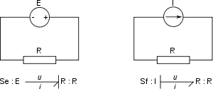 - Вони виділяють причинні зв'язку між зусиллями (сила, напруження, тиск) і потоками (швидкість, електричний струм, витрата). Такі причинні зв'язку задаються один раз, коли створюється вихідна схема, що дозволяє крім іншого виявити модельовані явища, такі як, наприклад, струми в бобіні, кутова швидкість маховика і т. д.;