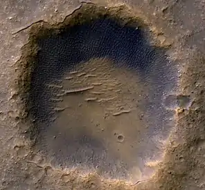 Кратер Бонневіля, знятий дослідницькою станцією Mars Global Surveyor.