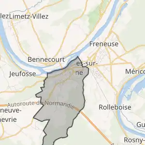 Муніципалітет розташований на відстані[2] близько 60 км на захід від Парижа, 50 км на північний захід від Версаля.